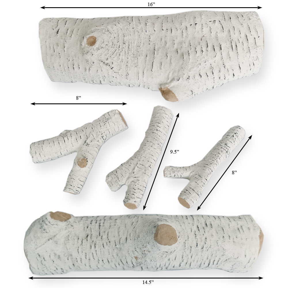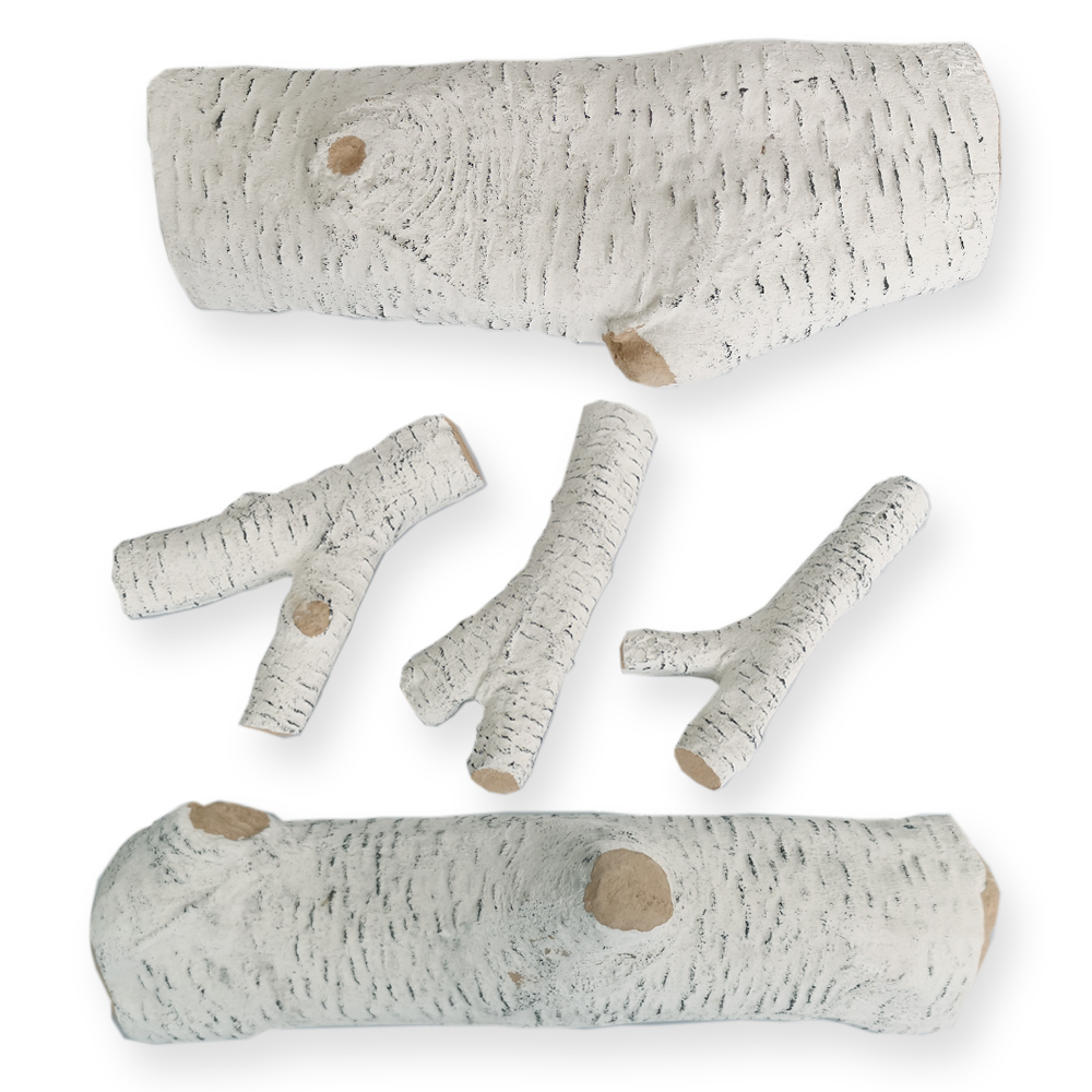 Realistic and highly durable ceramic fiber logs. This set is designed to give you the looks of real natural wood with its beautifully designed birch finish. Can be conveniently used indoor/outdoor. This set gives you 6-pieces that are lightweight and easy to arrange based on your needs and/or creativity.