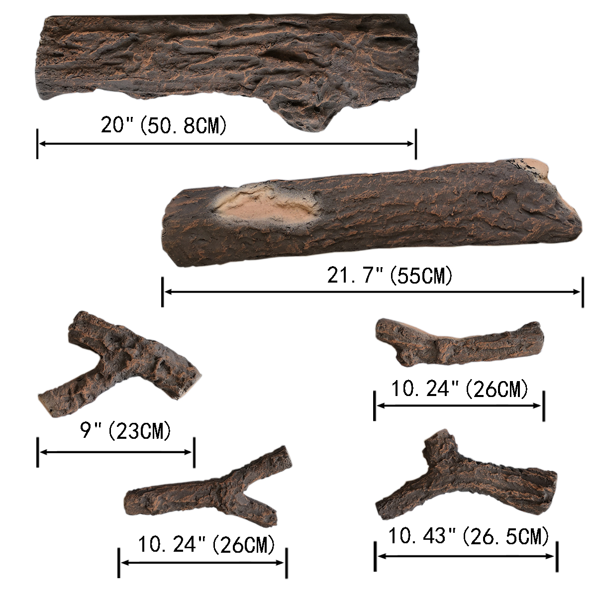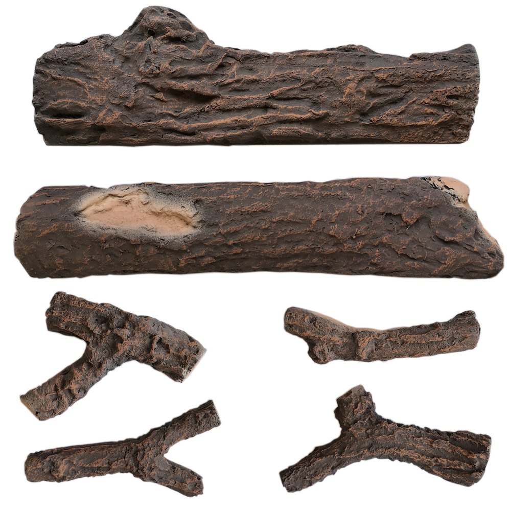 Realistic and highly durable ceramic fiber logs. This set is designed to give you the looks of real natural wood with its in depth bark texture and grain details. Can be conveniently used indoor/outdoor. This set gives you 6-pieces that are lightweight and easy to arrange based on your needs and/or creativity.