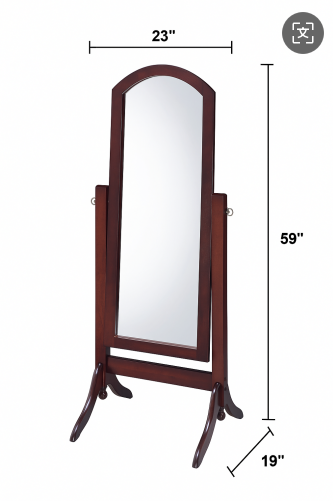 Barrington Cheval standing mirror in Walnut or White finish, mirror supported by solid Rubber wood, can be adjusted for different viewing angles.