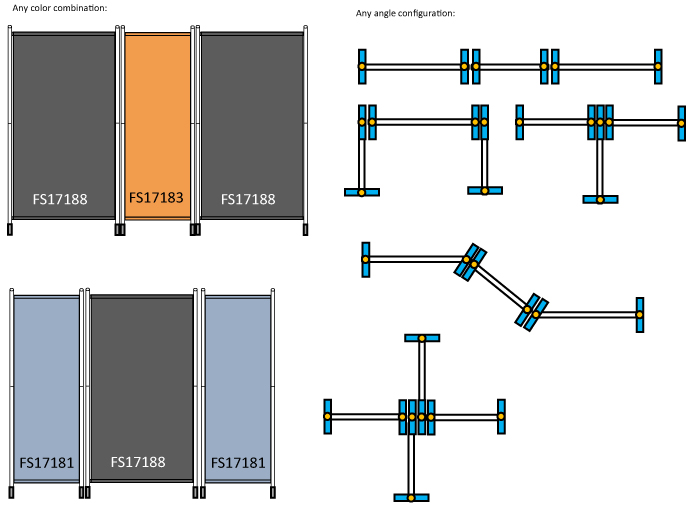 A Two Panel Room Divider with black powder coated metal tubing frame, it is both light weight and sturdy. Each panel is 3 feet (36 inches) wide and made of 100% Polyester fabric with water repellent, it is good for both indoor and outdoor environment. With a double hinged design panels can turn to either direction to accommodate andy object and space. With 4 different colors to choose from, Gray, Beige, Orange and Black. One of these colors will definitely match your furniture and places that are required for privacy. Size: 36″ W x 71″ / Panel. 2 Panels/Package.