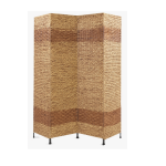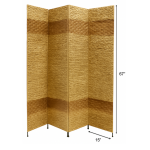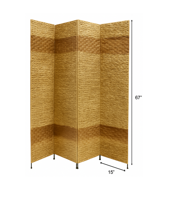【NATURAL MATERIALS & RELAXED AMBIENCE】This decorative room divider features textured folding panels with a natural color finish and espresso band
