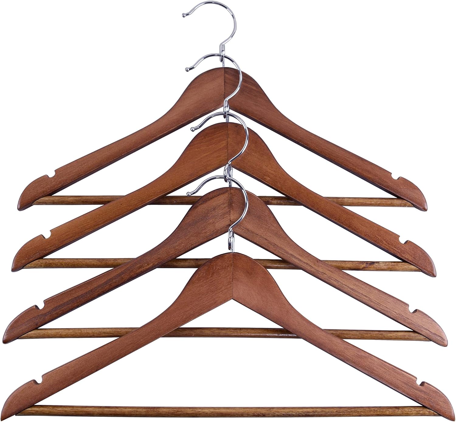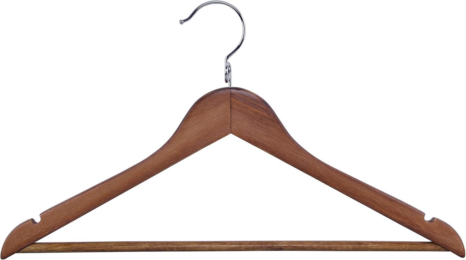 Crafted from natural solid wood with a sanded surface and a clean finish, the Kascade hanger ensures that your clothes are free from snags. The hanger is also equipped with an anti-rust chrome hook, a robust pants bar, and shoulder notches, helping to keep your dresses, shirts, strap blouses, jackets, and pants in place and wrinkle-free.